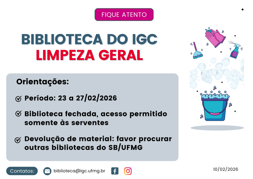 O Instituto de Geociências (IGC) surgiu em 1968, a partir do desmembramento da Faculdade de Filosofia, que antes abrigava vários cursos na Rua Carangola, Centro de Belo Horizonte. Com a criação do IGC, foi também criada a Biblioteca, especializada, inicialmente, em Geografia e Cartografia. Em 1973, o Instituto foi transferido para o Campus Pampulha e em 1983 foi construído o atual prédio do IGC. A Biblioteca, então, ampliou o acervo com materiais relacionados a Geociências como a Cartografia, Geografia, Geologia e Turismo (Fonte: Boletim Informativo do Sistema de Bibliotecas da UFMG, ano 3, n.9, 2014).